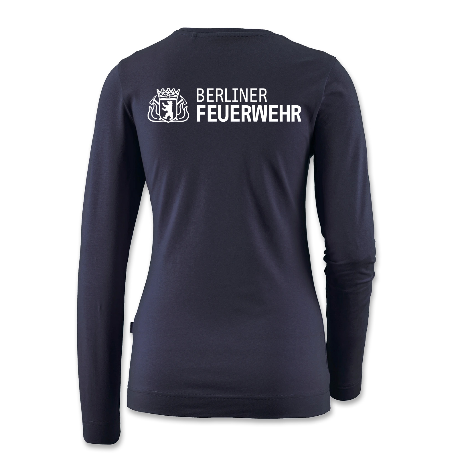 • Mit dem kompletten Logo der Berliner Feuerwehr auf der linken Brust und auf der Rückseite in weiß