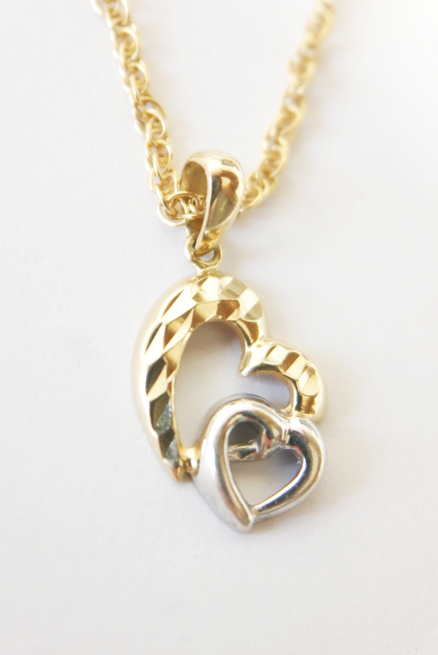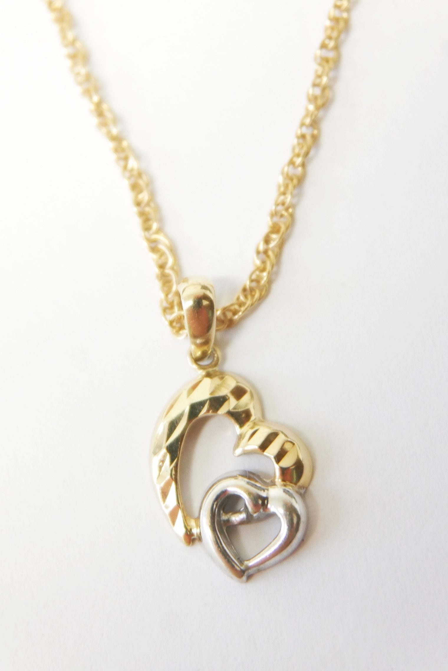 Doppelherz Anhänger für Liebende Anhänger mit feiner Kette Second Hand Gold 585