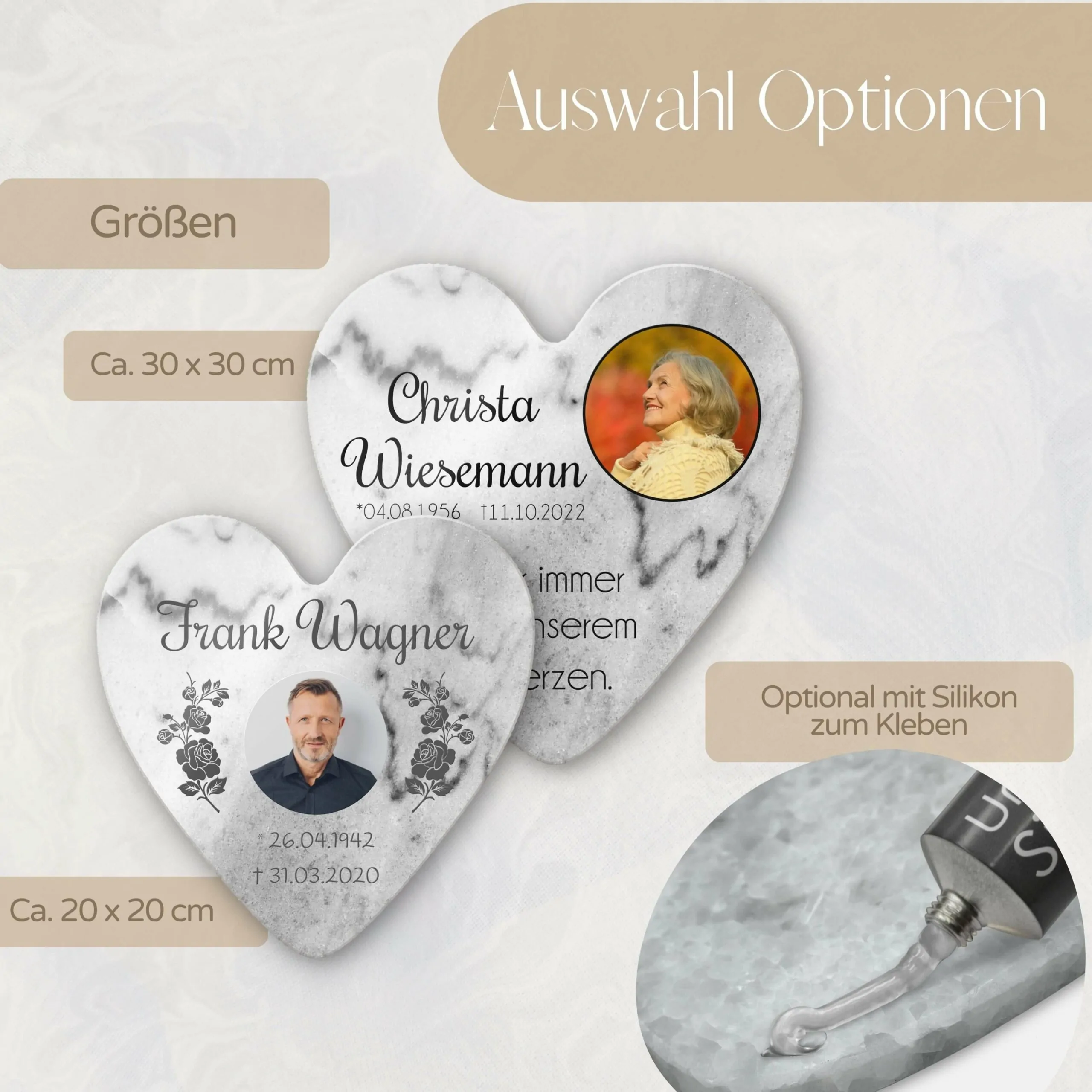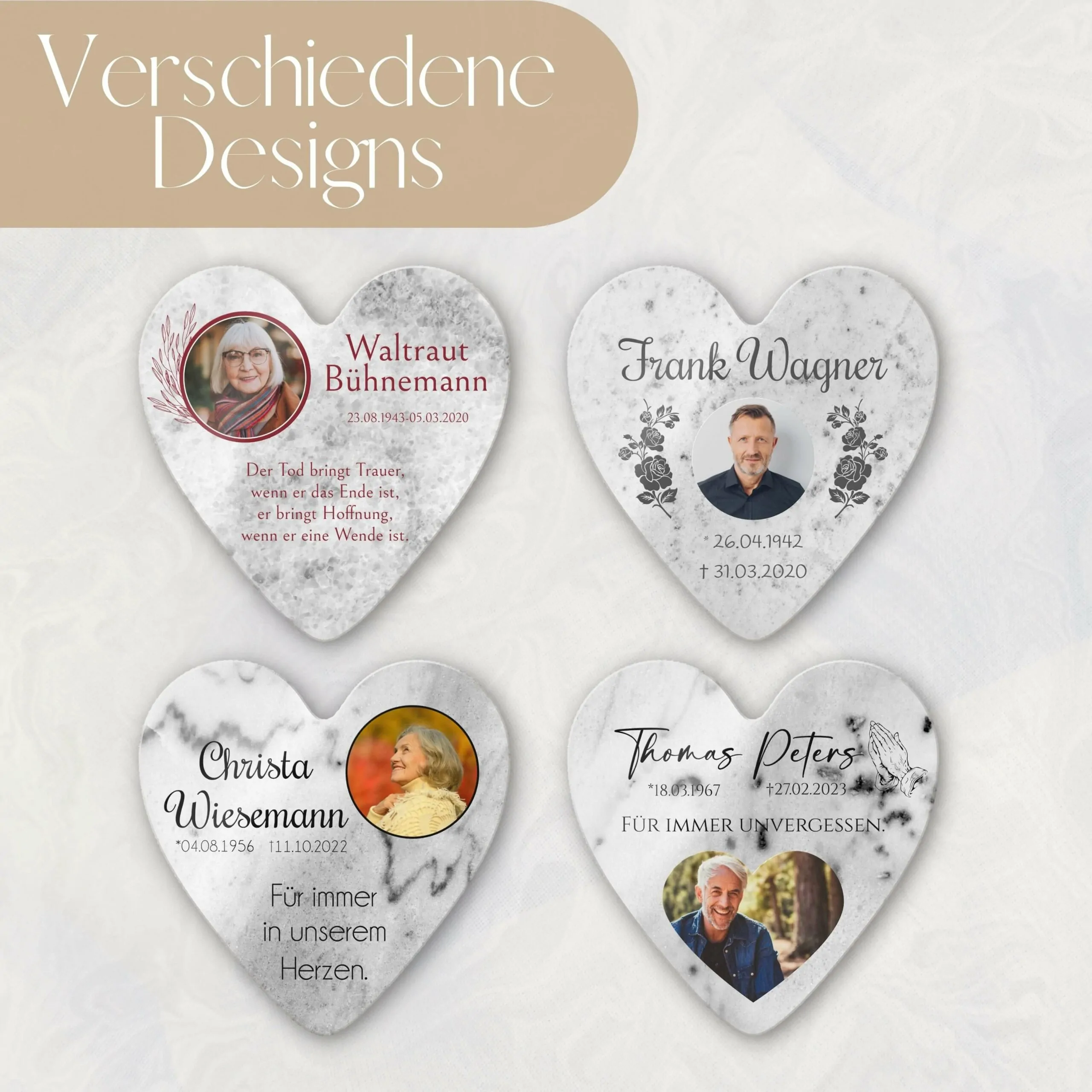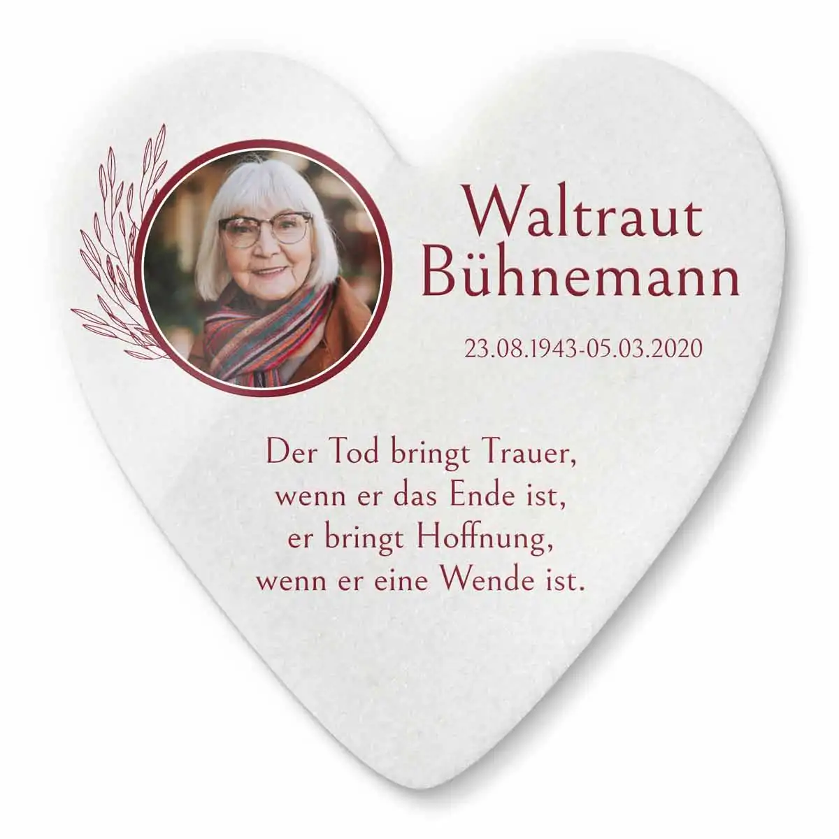 Unsere personalisierten Grabplatten sind ein würdiges Andenken an einen geliebten Menschen. Egal, ob Opa, Oma, Papa, Mama oder Geschwister – jeder verdient ein individuelles und besonderes Gedenken. Unsere hochwertigen Marmor Gedenk Steine sind vielseitig einsetzbar als: Grabstein Urnengrab – Sternenkinder Andenken – Trauerstein – Gedenkstein – Grabtafel – Urnentafel. Der schöne Grab Schmuck ist für das Begräbnis auf dem Friedhof Grab im Außenbereich geeignet, kann aber auch im Innenbereich als Erinnerungstafel zur Trauer Bewältigung aufgestellt werden.