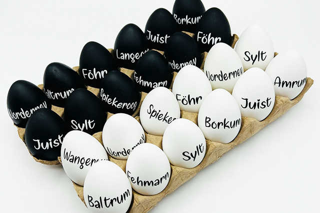 Ostertage stehen vor der Tür – auch für Insel- und Küstenfans: Wie wäre es mit besonderem maritimen Osterschmuck mit einem Föhr-Ei?
