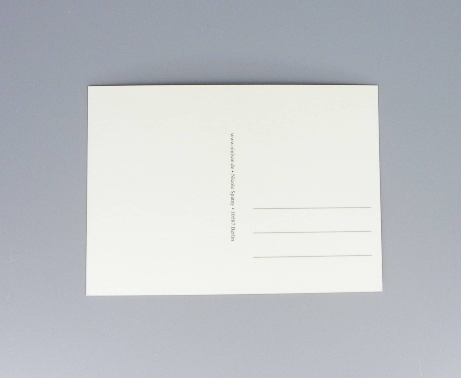 Die Grundfarbe der Postkarten ist cremeweiss. Die Zeichnung ist mit Buntstift ausgemalt und gedruckt.
