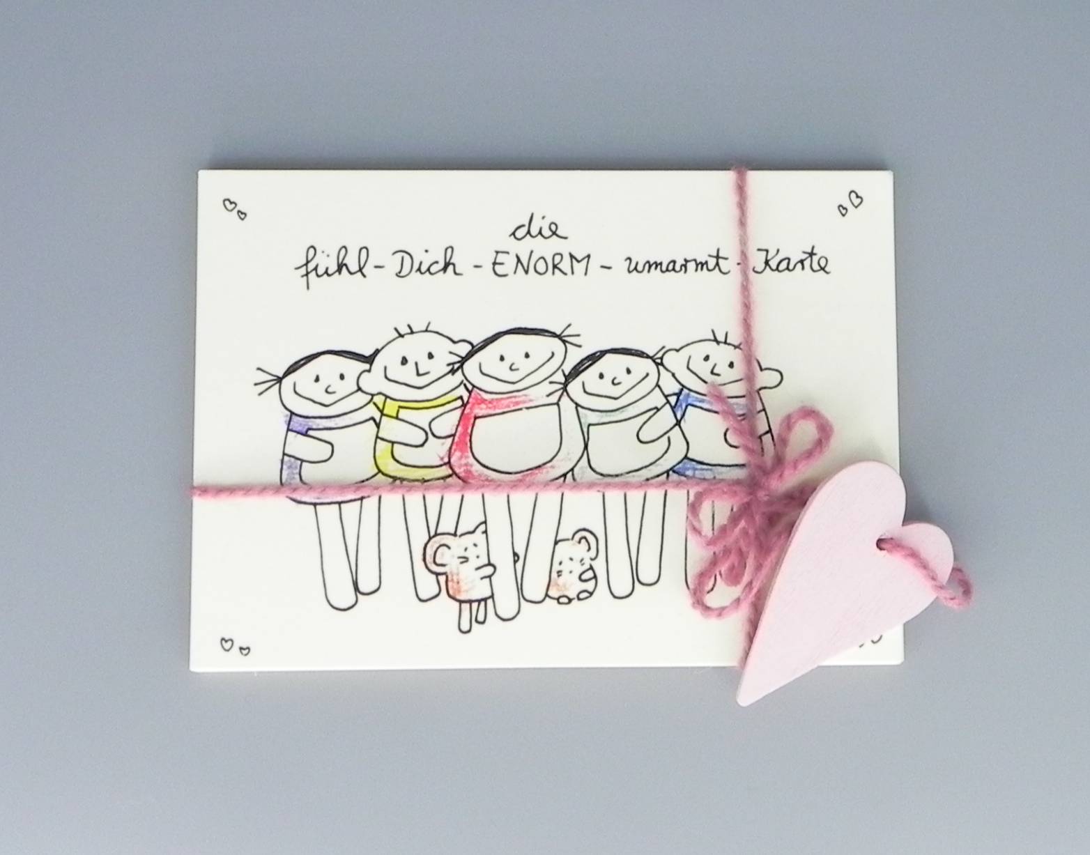 Mit diesen Mutmachkarten kannst Du lieben Personen virtuelle Umarmungen schicken. Noch ein paar schöne Worte dazu und ab in den Briefkasten. Es gibt so viele Situationen, in denen wir solche Nachrichten und gesten gut gebrauchen können. Social distancing, eine Trennung, Liebeskummer, Sorgen am Arbeitsplatz, Verlust einer lieben Person, ein burn out und so vieles andere mehr. Wächst jemanden mal alles über den Kopf, dann schicke ihr/ihm die Karte zur Aufmunterung und Unterstützung. Solche Gesten können ja schon so viel bewirken.