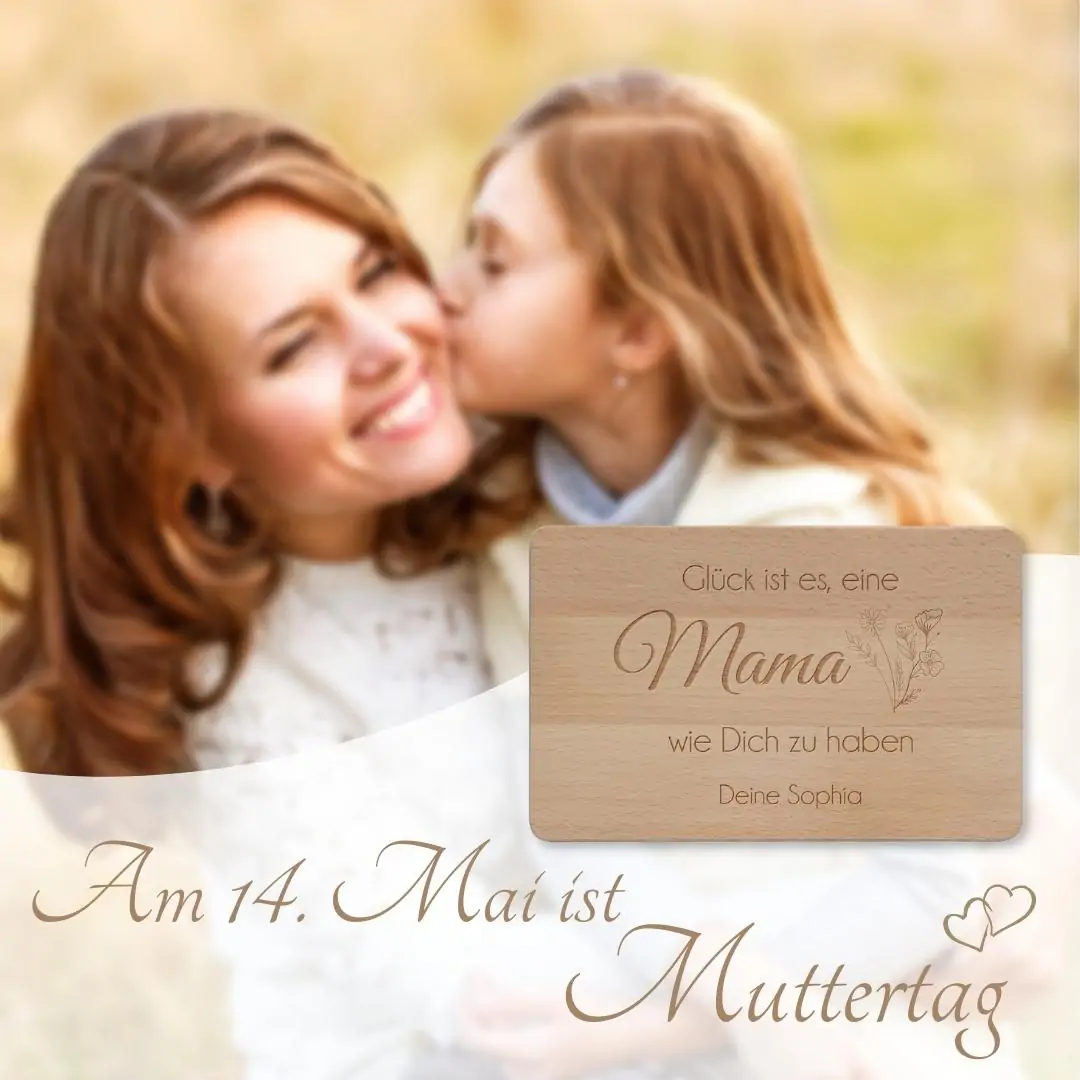 Unser Holzbrettchen eignet sich hervorragend als Geschenk für den Muttertag oder den Geburtstag deiner Mama. Deine Mama wird sich bei jedem Frühstück an dich erinnern und sich über das praktische und stilvolle Geschenk freuen.