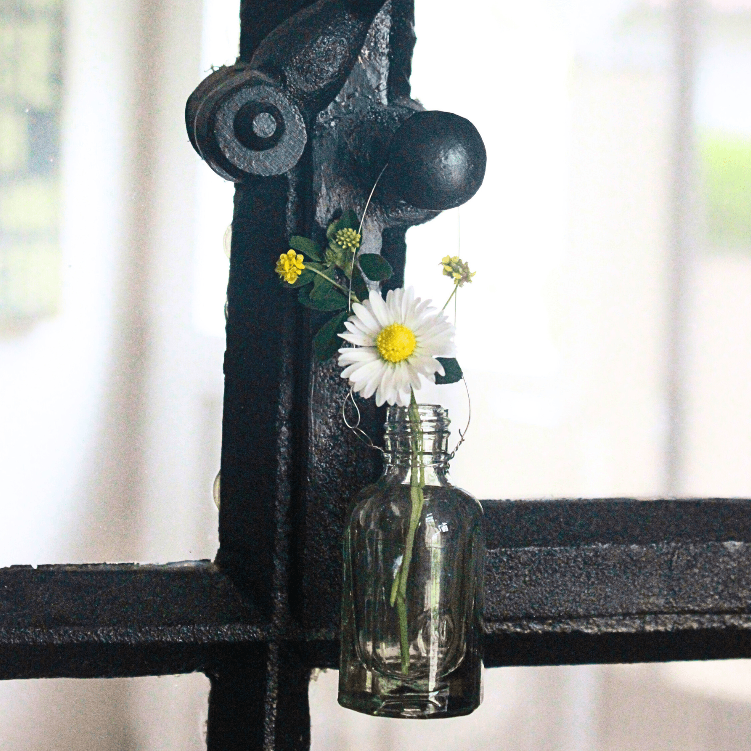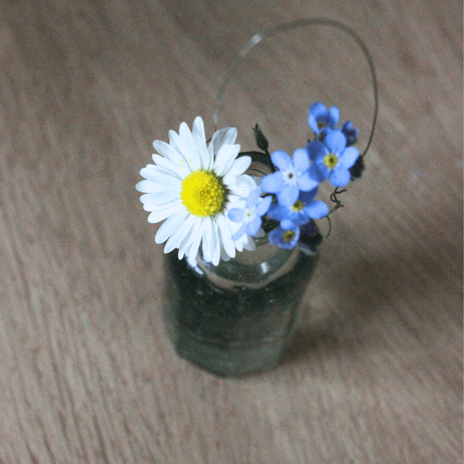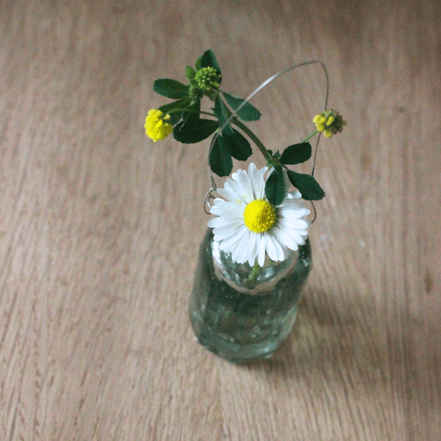 Die Form der Vase ist nicht exakt rund, sondern leicht achteckig. Die Öffnung oben ist ca. 6 – 7 mm groß, das ist genug Platz für das ein oder andere Gänseblümchen oder Butterblumen, Vergißmeinnicht, Gräser, Frühlingsblüher und viele andere Schnittblumen mit dünnen Stengeln. Ich bringe ständig kleine Blumen von unseren Gassirunden mit und bei uns im Garten gibt es immer irgendwo etwas, das blüht. So kannst Du auch abgeknickte Blumen noch phantastisch in Szene setzen!