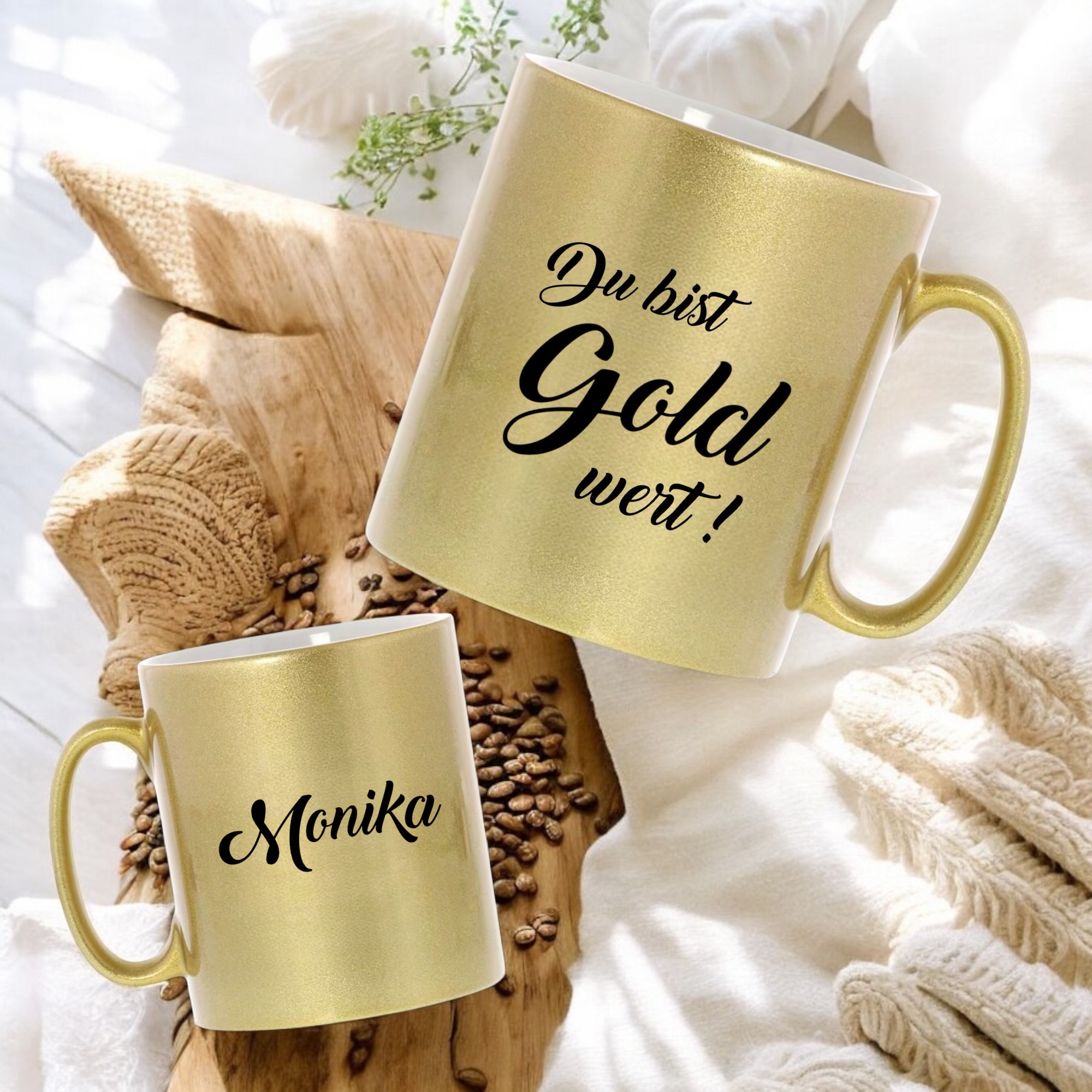 Goldene Keramiktasse mit Spruch „Du bist Gold wert!“ Mitarbeitergeschenk Weihnachten, Weihnachtsgeschenk