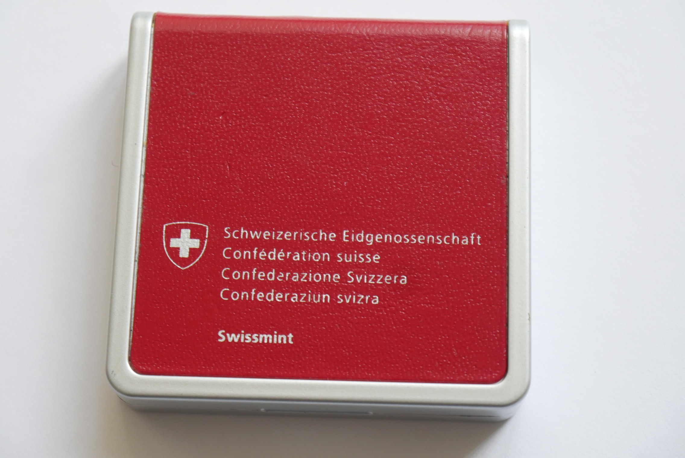 - In einer transparenten Kunststoffbox und Metallbox aufbewahrt