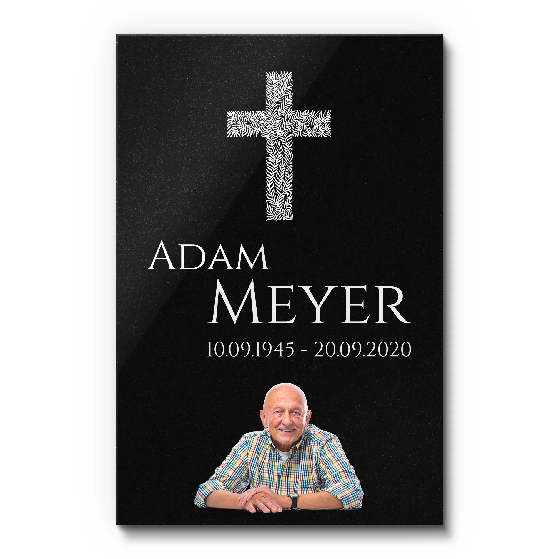Bewahre die Erinnerung an einen geliebten Menschen mit unserer hochwertigen Granit-Gedenktafel, die durch farbigen UV-Druck zum Leben erweckt wird. Die aufwendig polierte Oberfläche des Granits spiegelt die Tiefe und die Bedeutung des Andenkens wider, während der lebendige Farbdruck die Persönlichkeit des Verstorbenen einfängt und ehrt.