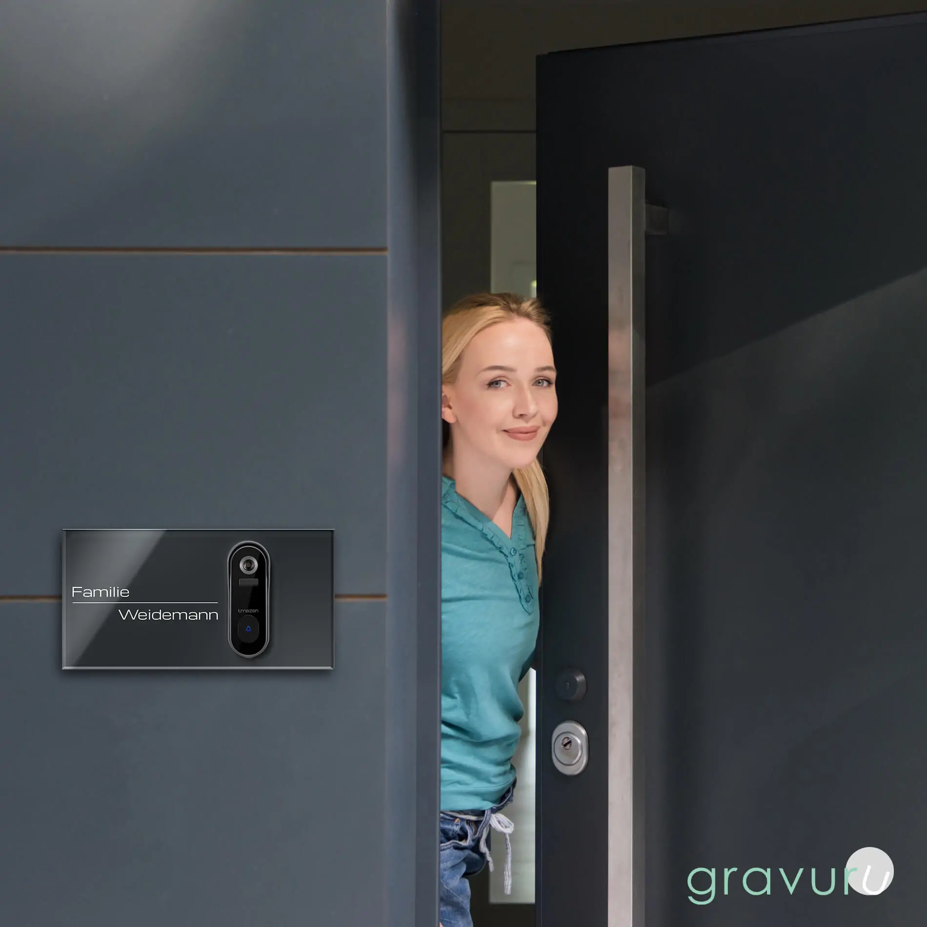 Graviertes Funkklingelschild für die Tmezon Smart Home Klingel