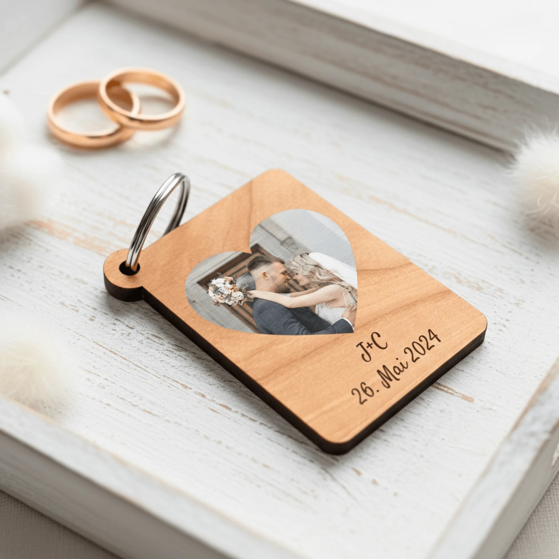 Ob das Lächeln eines geliebten Menschen, ein besonderer Moment oder ein Ort voller Erinnerungen – mit diesem personalisierten Holz-Schlüsselanhänger trägst du deine schönsten Augenblicke immer ganz nah bei dir. Ein kleiner Glücksbringer, der dich täglich begleitet und an das Wesentliche erinnert.