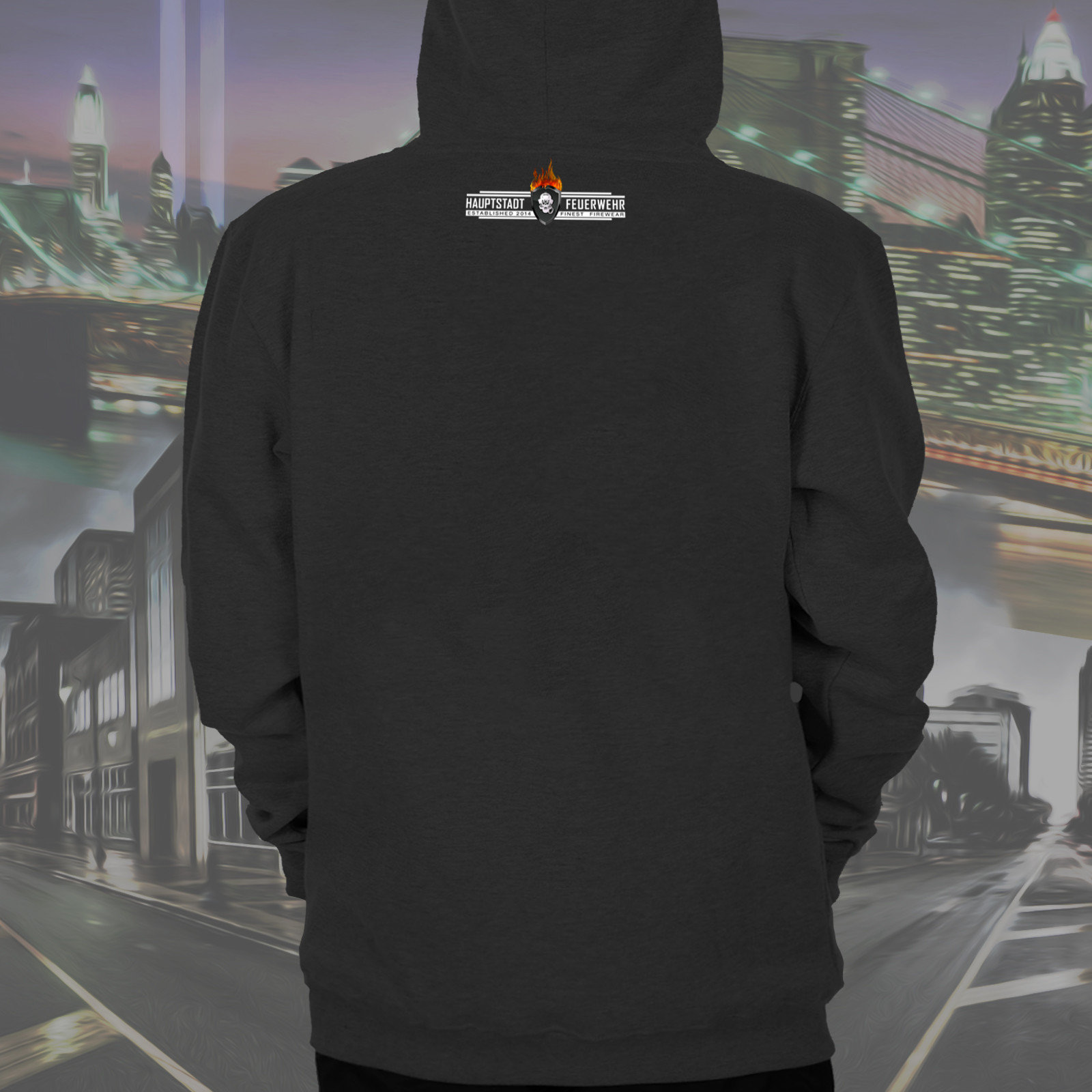 Hochwertiger schwarzer Kapuzenpullover.