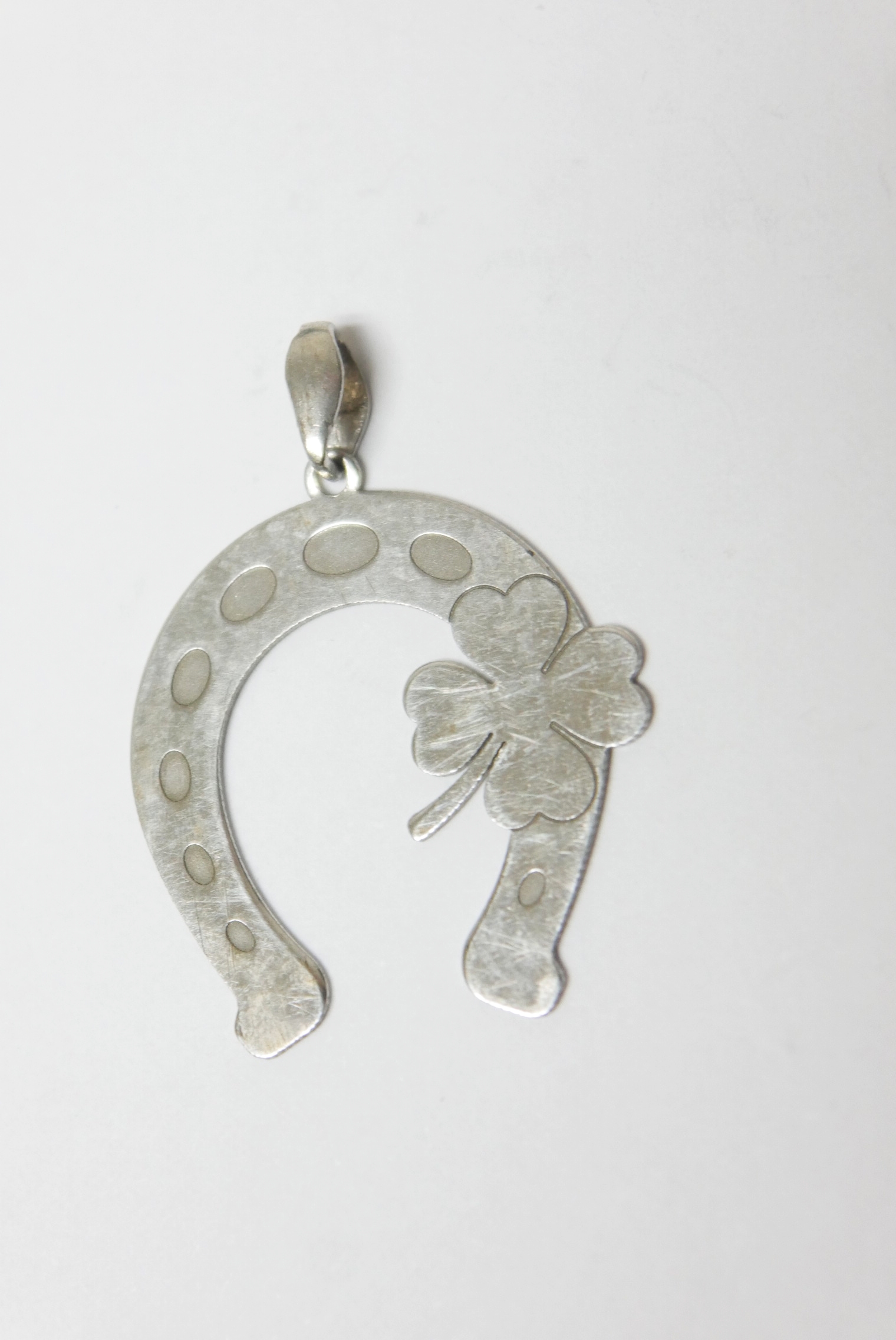 Hufeisen mit Kleeblatt Anhänger für doppeltes Glück Vintage Silber 925er