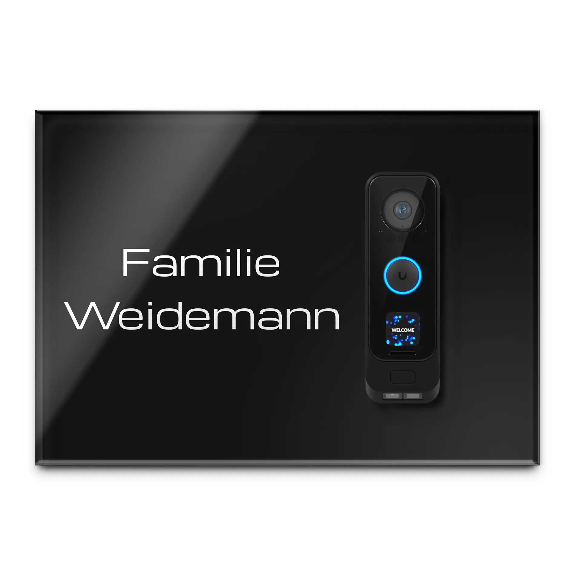 Du suchst eine stilvolle Möglichkeit um Deine Funkklingel im Hauseingang zu befestigen? Gestalte eine Klingelplatte für Deine Funkklingel und personalisiere sie genau nach Deinen Wünschen. Unsere hochwertigen Funkklingelschilder aus massivem V2A Edelstahl und hochglänzendem Acrylglas machen Deine Doorbell Türklingel zu einem echten Hingucker im Eingangsbereich.