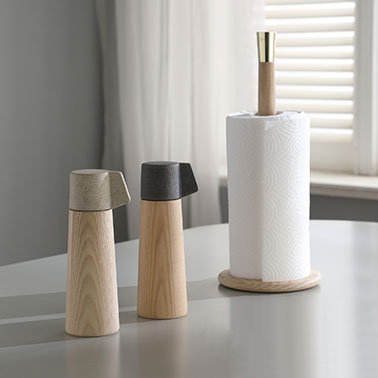Zu der RAFAEL Serie zählt der formschöne, schlankgearbeitete Küchenrollenhalter. Die glatte Eiche wird mit einer Eisenverzierung aus Messing im oberen Bereich veredelt und verleiht dem Halter den gewissen Chic. Mit RAFAEL holst du dir ein stylisches Element in die Küche und selbst deine Küchenrolle wird zum Trendobjekt.