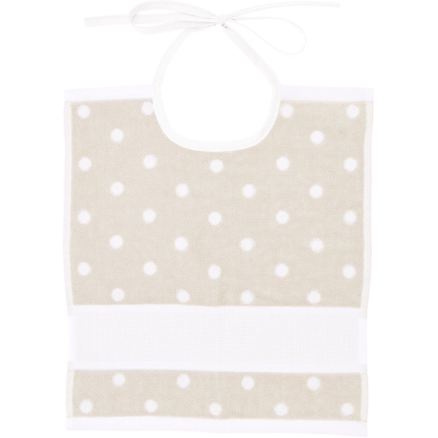 Das Lätzchen ist aus 100% Baumwolle / Frottier und hat eine Größe von 30x 34 cm.