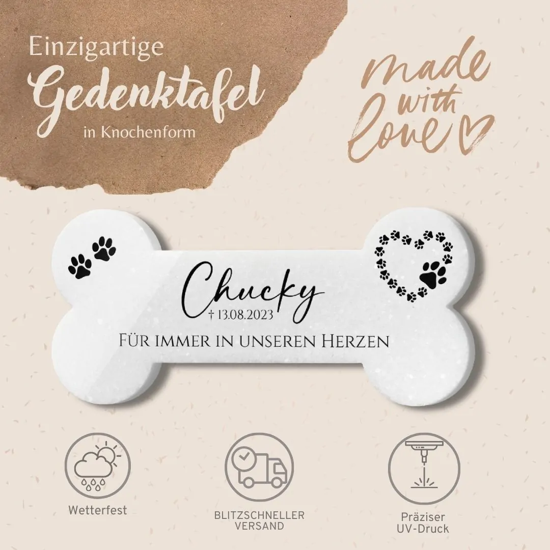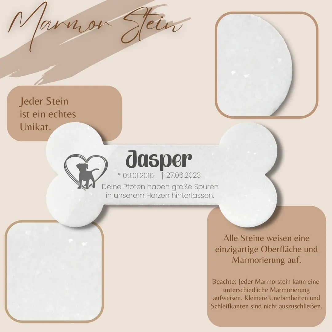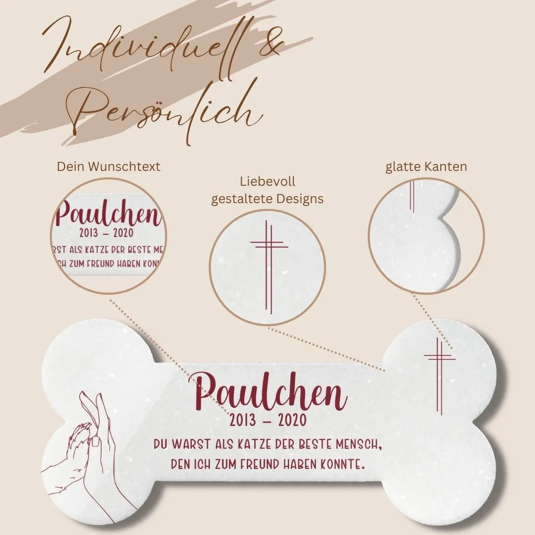 Unsere personalisierten Tier Grabsteine sind ein würdiges Andenken an ein geliebtes Haustier, welches lange Zeit an unserer Seite war. Egal, ob Hund, Katze, Hase, Vogel oder Pferd – jeder verdient ein individuelles und besonderes Gedenken. Unsere hochwertigen Marmor Gedenk Steine sind vielseitig einsetzbar als Erinnerung zum Aufstellen Zuhause, zur Verschönerung neben dem Tiersarg, als Grabdekoration auf dem Tierfriedhof oder als Gedenktafel an einer privaten Gedenkstätte. Sowohl drinnen als auch draußen kann die hochwertige Marmortafel aufgestellt werden.
