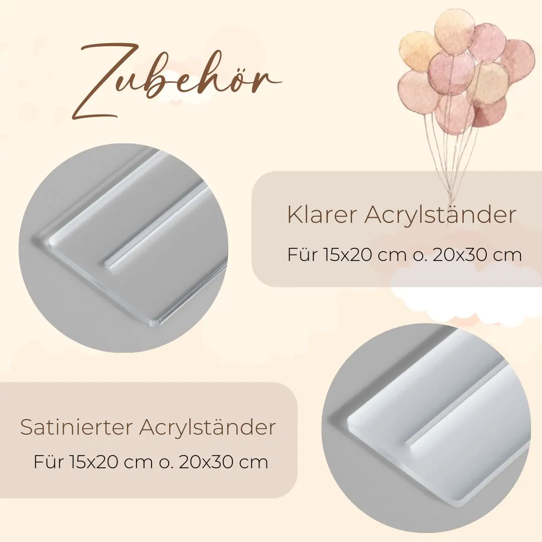 Das hochglänzende Acrylglas verleiht der Tafel nicht nur eine edle Optik, sondern macht sie auch zu einem dauerhaften Erinnerungsstück, das in jedem Wohnzimmer eine persönliche Note hinzufügt. Ob für dein eigenes Kind, den Enkel oder das Patenkind – diese Tafel ist eine wunderbare Methode, um die flüchtigen Momente der Kindheit dauerhaft in Erinnerung zu behalten.