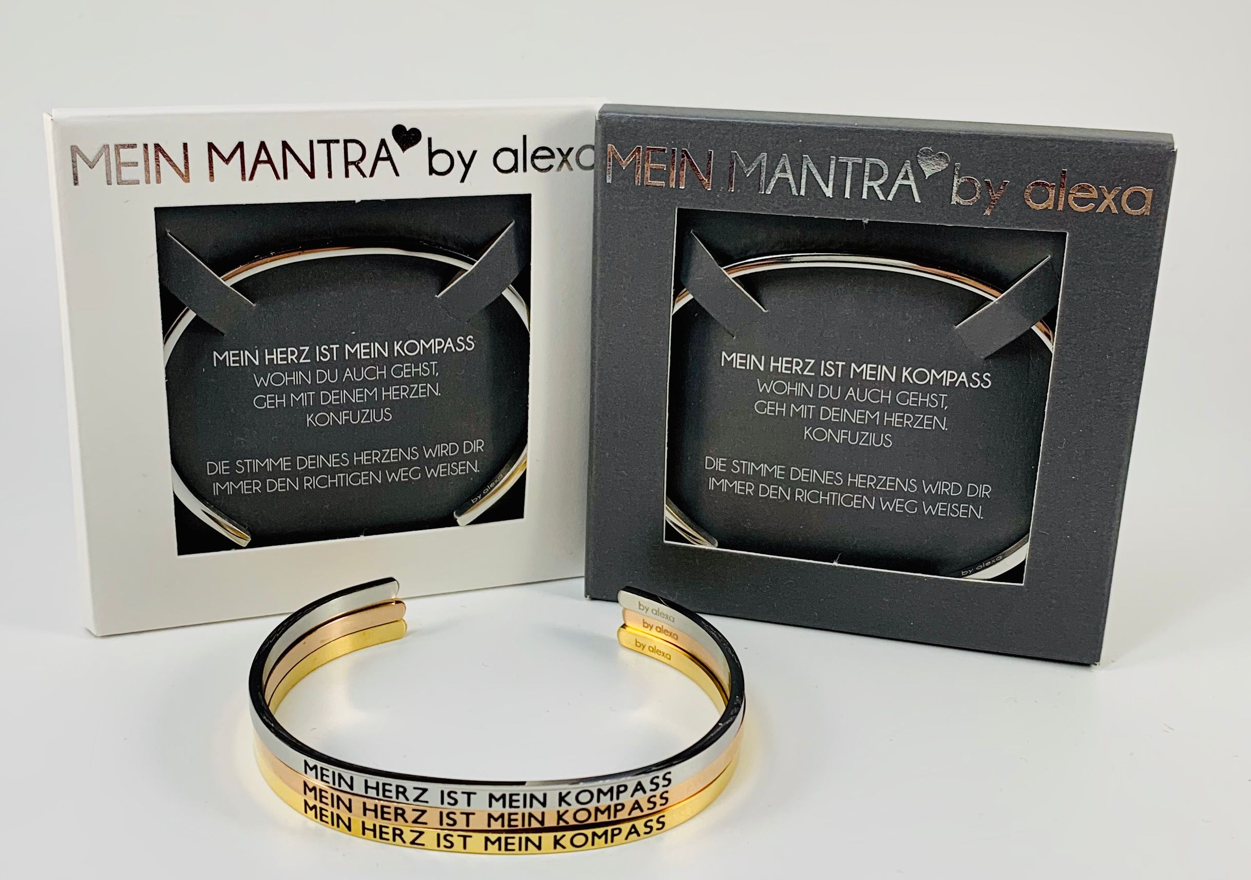 Mantra Edelstahl Armreifen von Mein Mantra by ALEXA MEIN HERZ IST MEIN KOMPASS in rosé vergoldet * versilbert * vergoldet