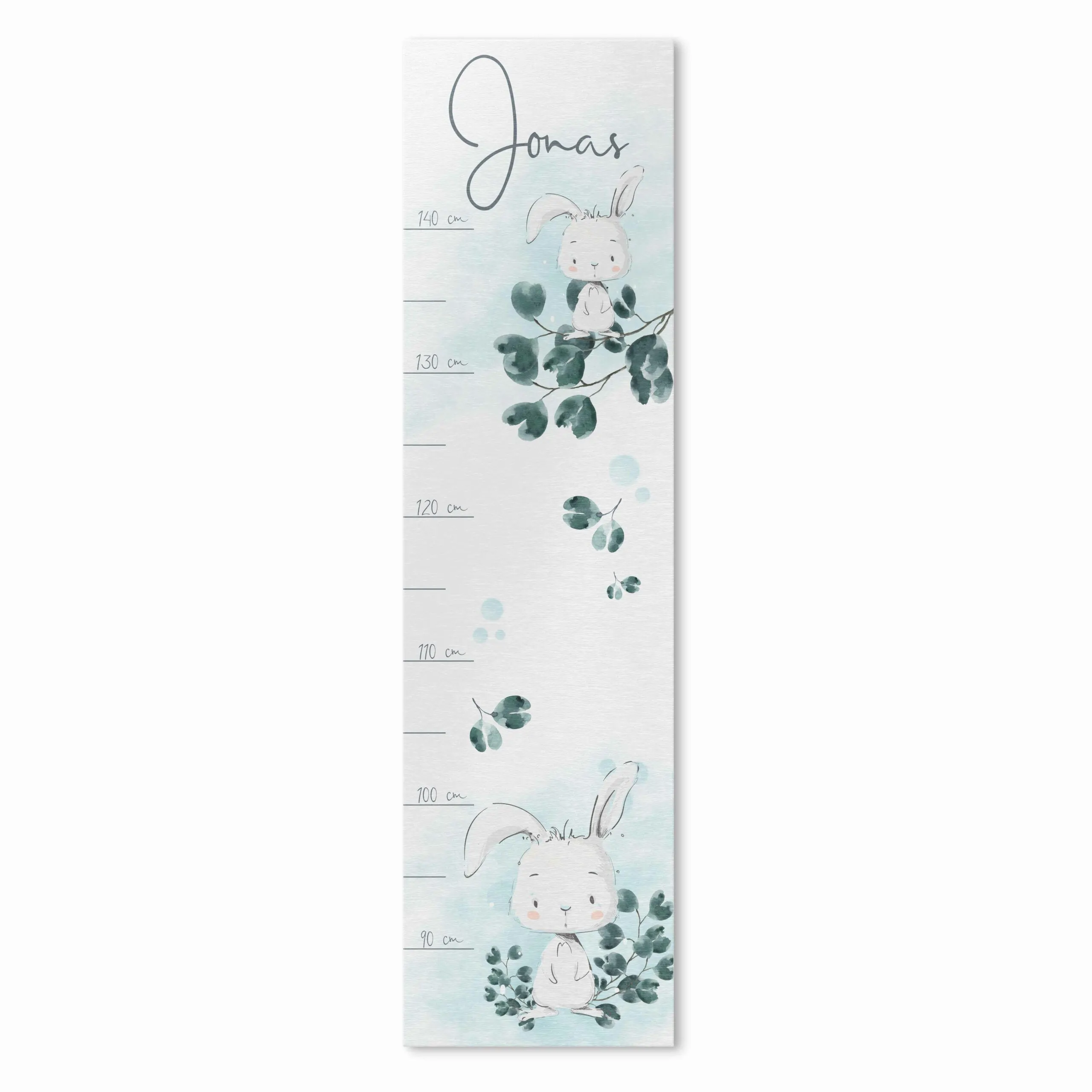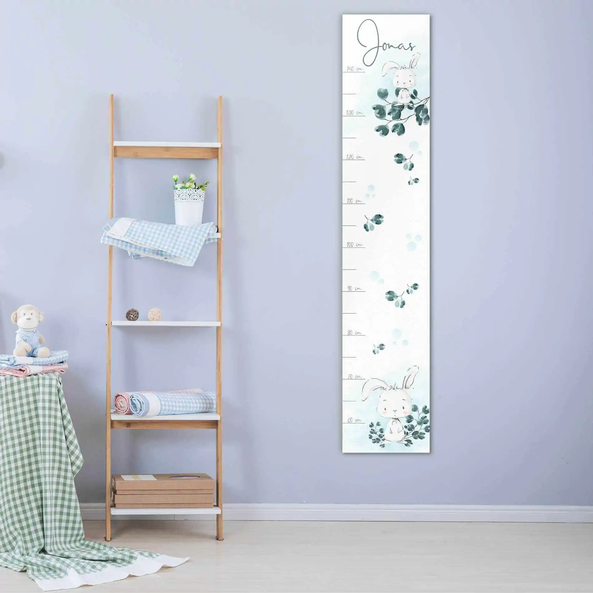 Messleiste für Kinderzimmer aus Holz mit Hasen und Blättern ab 20×70 cm