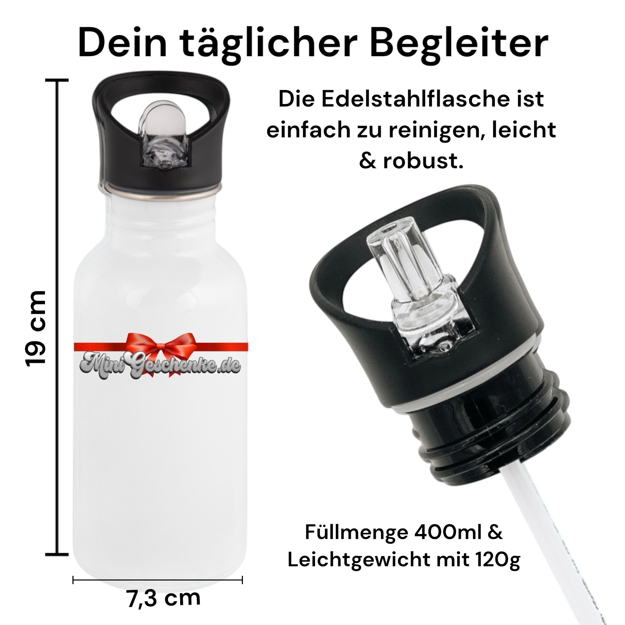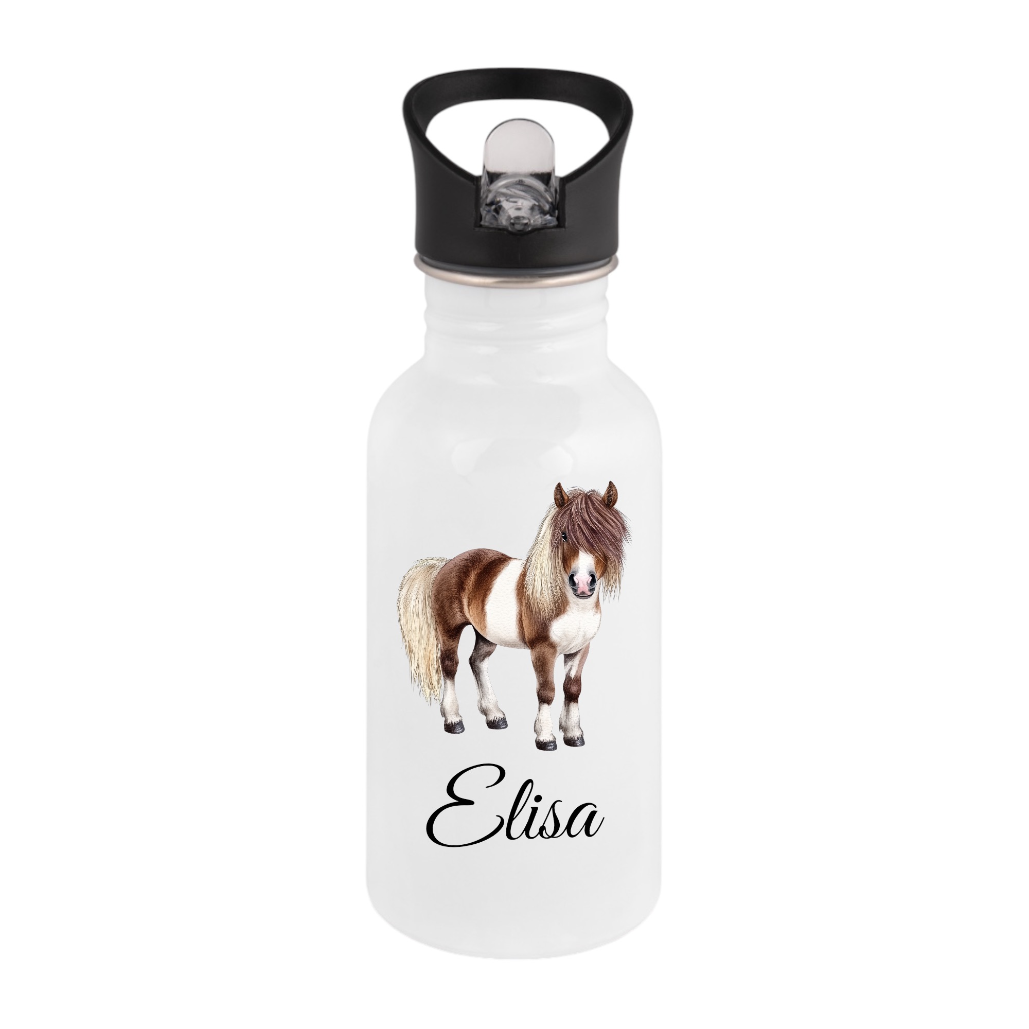 Personalisierte Trinkflasche Kinder Edelstahl [ 400ml ] – Robuste Trinkflasche mit Namen und Pony – Wasserflasche mit Trinkhalm