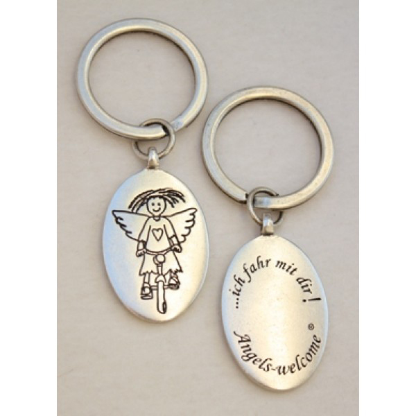 Schlüsselanhänger am Ring mit der Botschaft „ich fahr mit Dir“ von Angels Welcome by Kabuki Country.