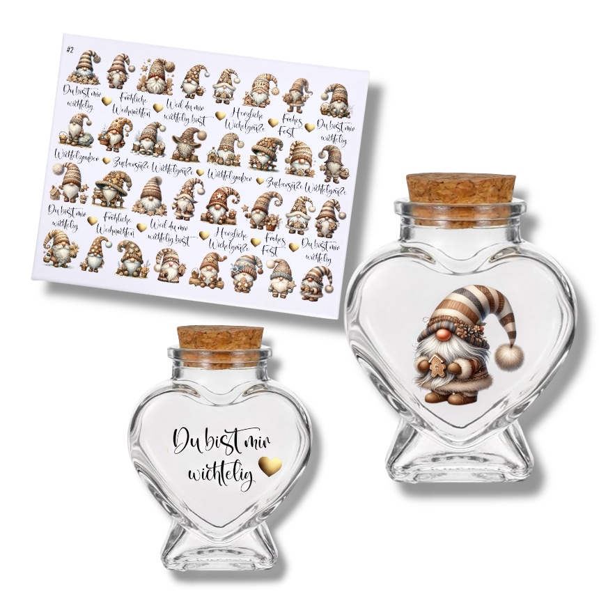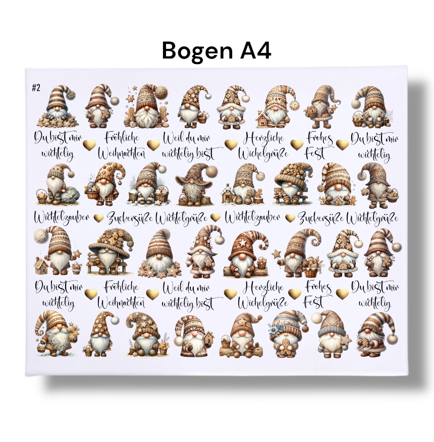 Rub-Ons-Sticker, #2 Mini-Wichtel natur, kleine Motive, Weihnachten, DIN A4, randlose Rubons