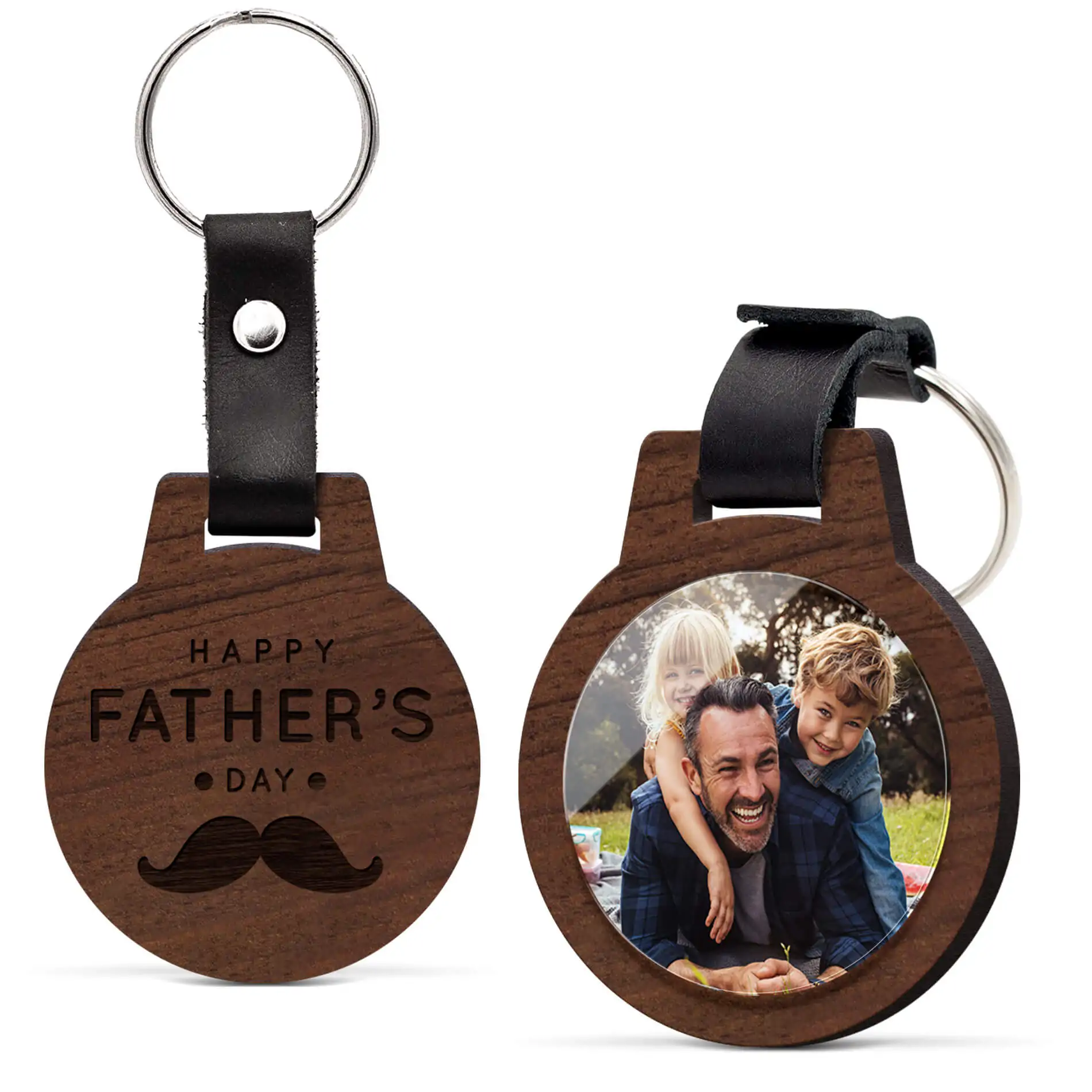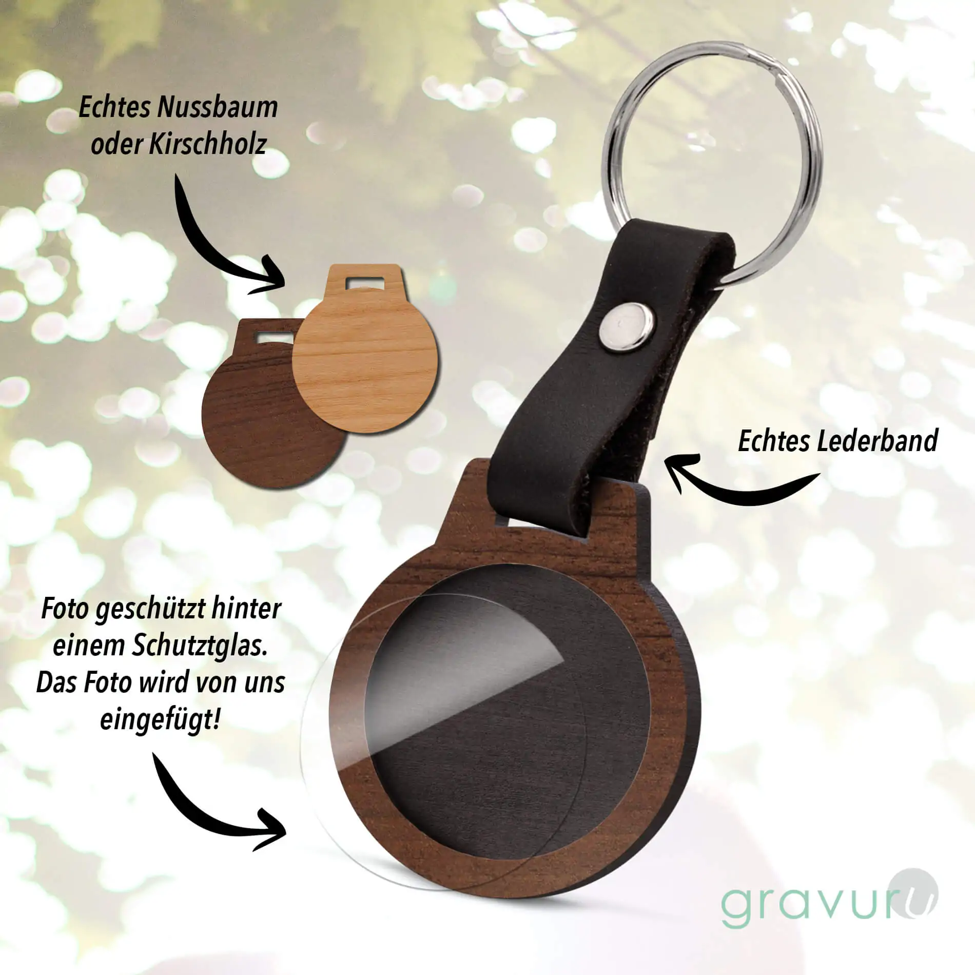 Schlüsselanhänger mit Fotodruck und Gravur aus echtem Holz