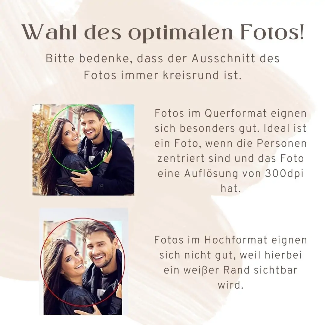 Liebe ist nicht das, was man erwartet zu bekommen sondern das, was man bereit ist, zu geben. Bereite einem ganz besonderen Lieblingsmenschen eine Riesenfreude mit unseren wunderschönen Schlüsselanhängern aus satiniertem Acrylglas und edlem Lederband und zeige ihm, wie viel er Dir bedeutet. Personalisiere den modischen Anhänger mit einem eigenen Foto und einer persönlichen Widmung. In unseren einzigartigen Anhängern steckt mehr als nur Handwerk. Wir haben all unser Herzblut in die Entwicklung und Herstellung dieses Schlüsselanhängers gesteckt. Diese Liebe zum Detail kannst Du spüren, wenn Du Dein persönliches Erinnerungsstück in den Händen hältst. Halte besondere Momente für die Ewigkeit fest und und bedanke Dich für wundervolle Augenblicke mit dieser kleinen aber feinen Aufmerksamkeit. Dein personalisierter Schlüsselanhänger wird getreu dem Motto „In guten Zeiten und in schlechten erst recht“ immer an Deiner Seite sein.