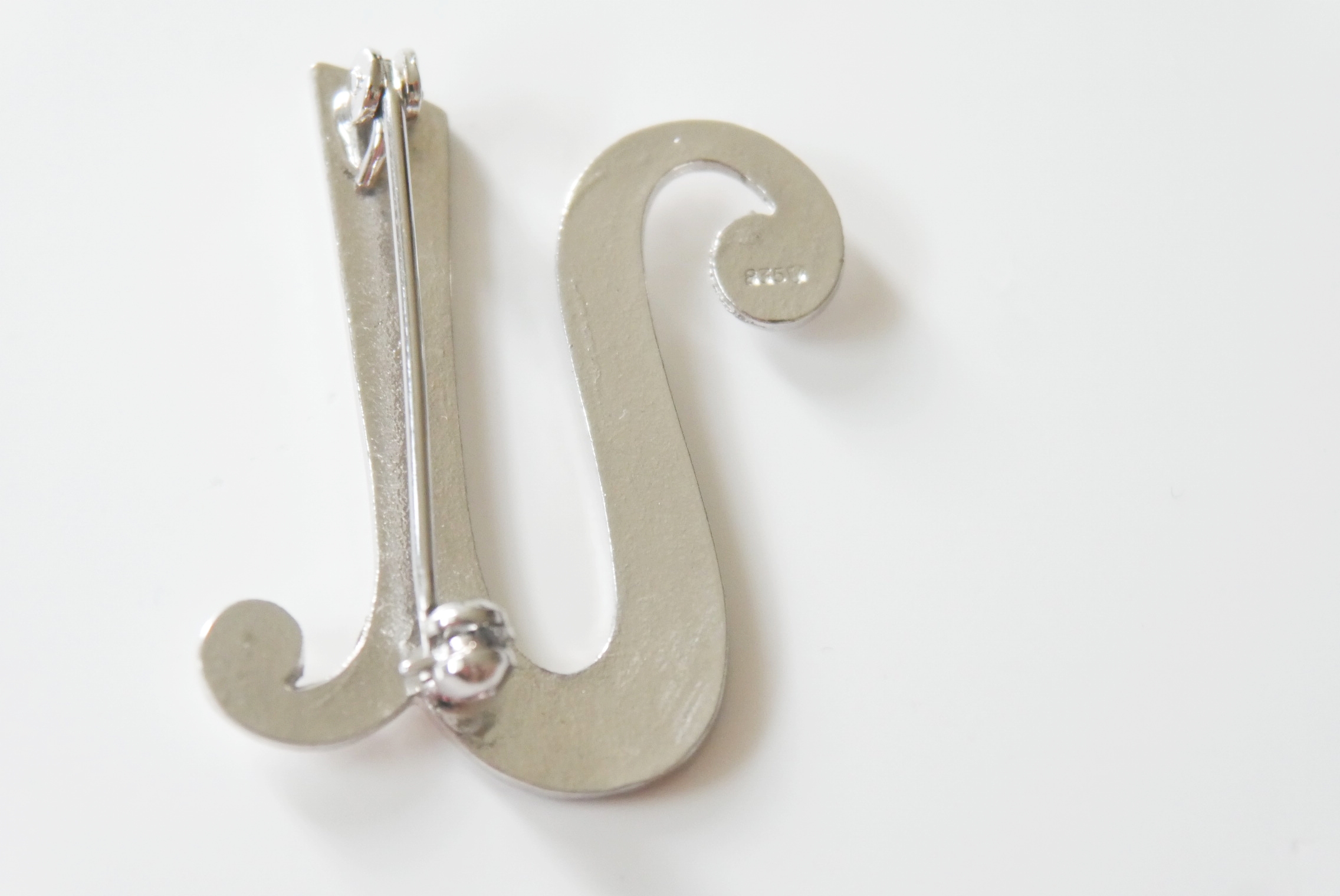 Eine schöne Second-Hand Vintage Brosche mit dem Buchstaben U neuwertig und fein zisiliert aus Silber mit Punze 83 und einem unbekannten Zeichen.