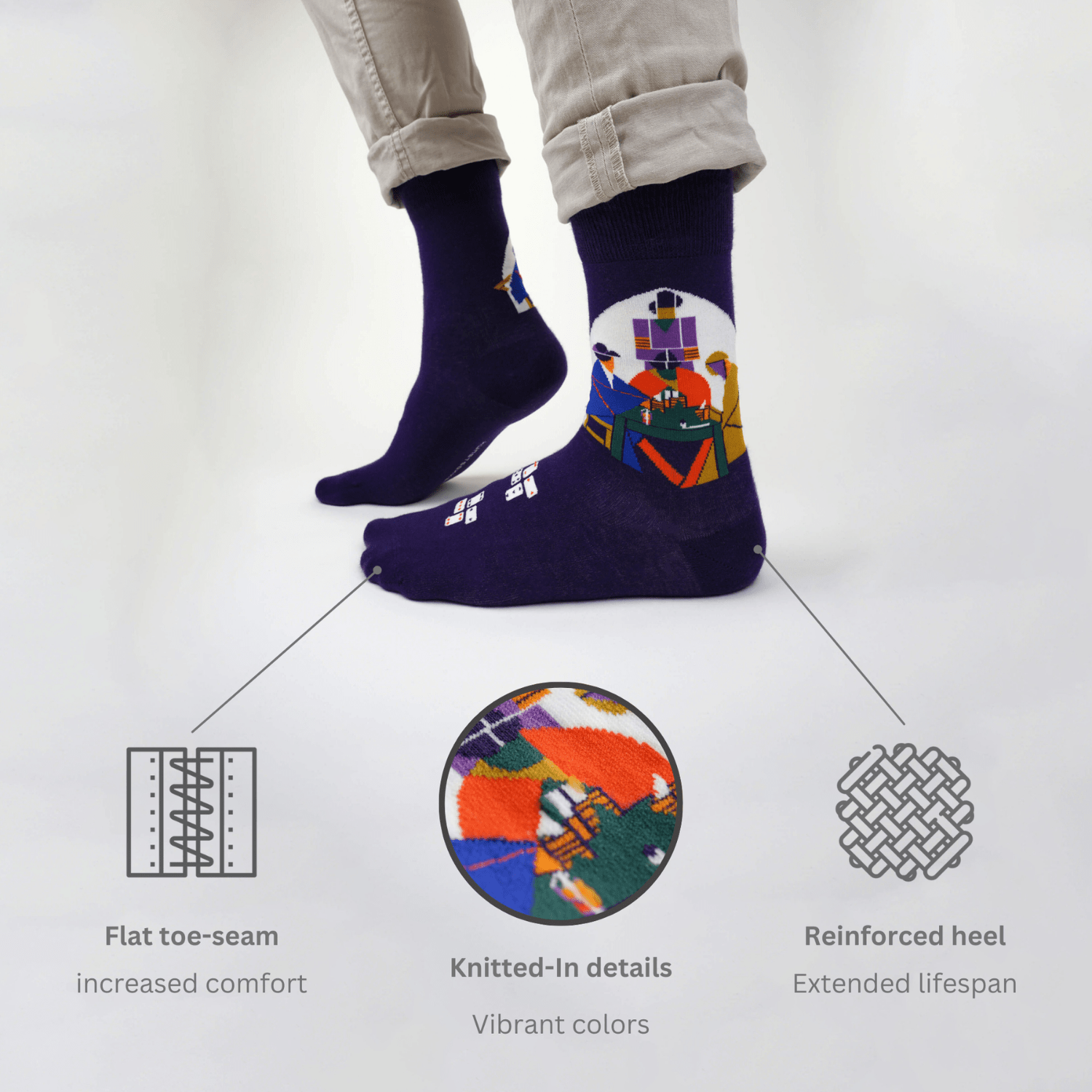 Die bekannten Meisterwerke von van Gogh, Monet, Kandinsky und vielen anderen hängen nicht länger nur in den großen Museen der Welt an der Wand, sondern liegen Dir jetzt neu interpretiert und wunderbar weich im wahrsten Sinn des Wortes „zu Füßen“, sorgen dort für ein kuscheliges und komfortables Tragegefühl und bringen Kreativität und Farbe in Deinen Alltag! Egal, ob Du ein Kunstkenner bist oder einfach das Besondere und Bunte liebst – diese Socken sind einfach ein Hingucker und eignen sich auch bestens zum Verschenken! Socken kann schließlich jeder gebrauchen, der nicht grad im Barfuß – Land wohnt, wo es immer mollig warm ist.