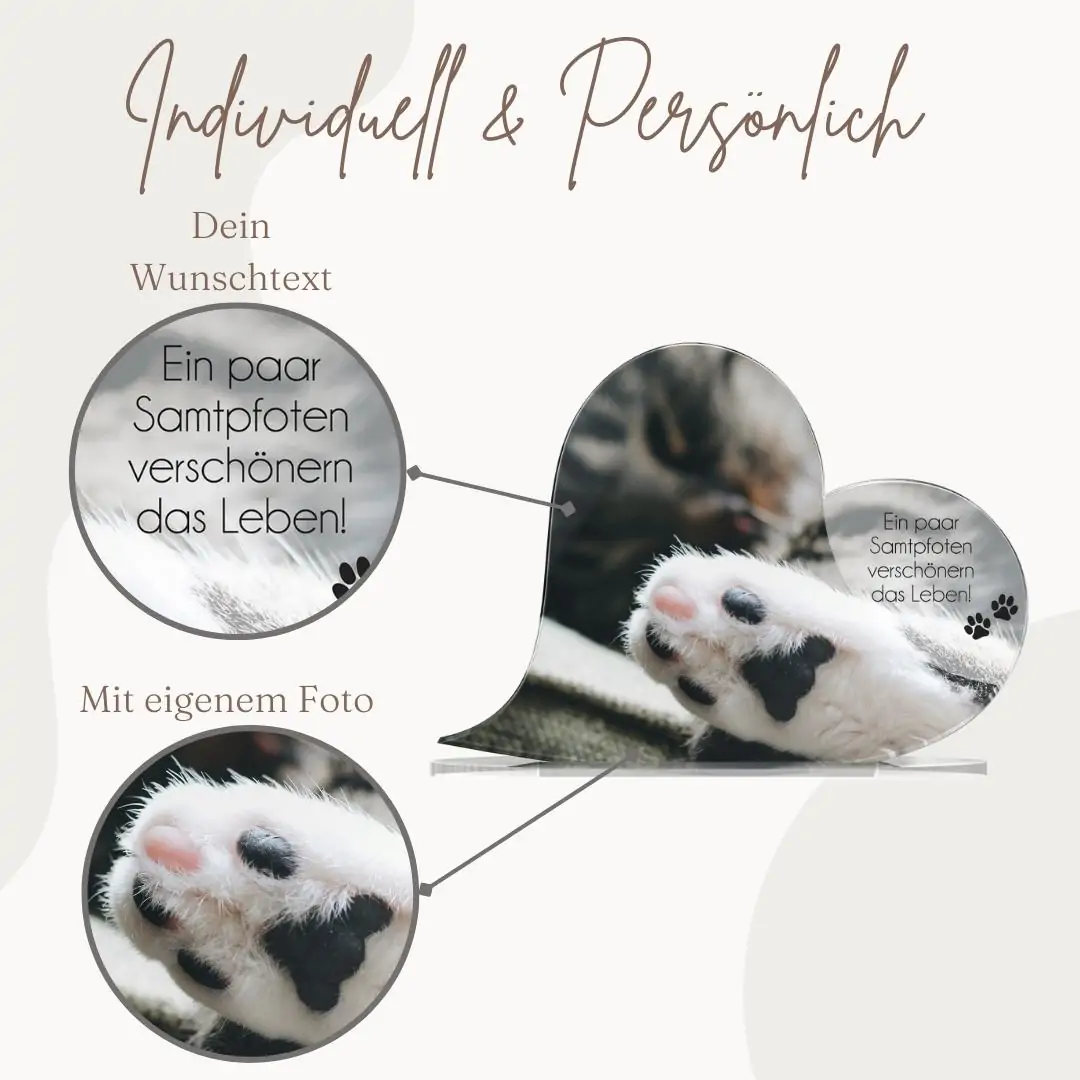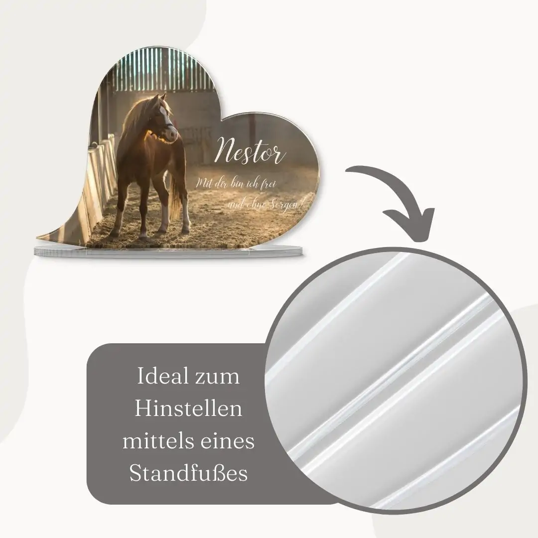 – Material: Hochglanz Acrylglas mit UV Druck – Größe: 18 x 13 cm oder 27 x 19 cm – Stärke: 5mm – inklusive Standfuß aus klarem Acrylglas (Einstecksystem) Bitte beachte, dass es sich hierbei um einen Dekoartikel und nicht um einen Gebrauchsgegenstand handelt. Dementsprechend sollte mit dem Standherz verfahren werden.