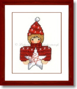 Stickpackung mit Stoff, Garn und Anleitung.