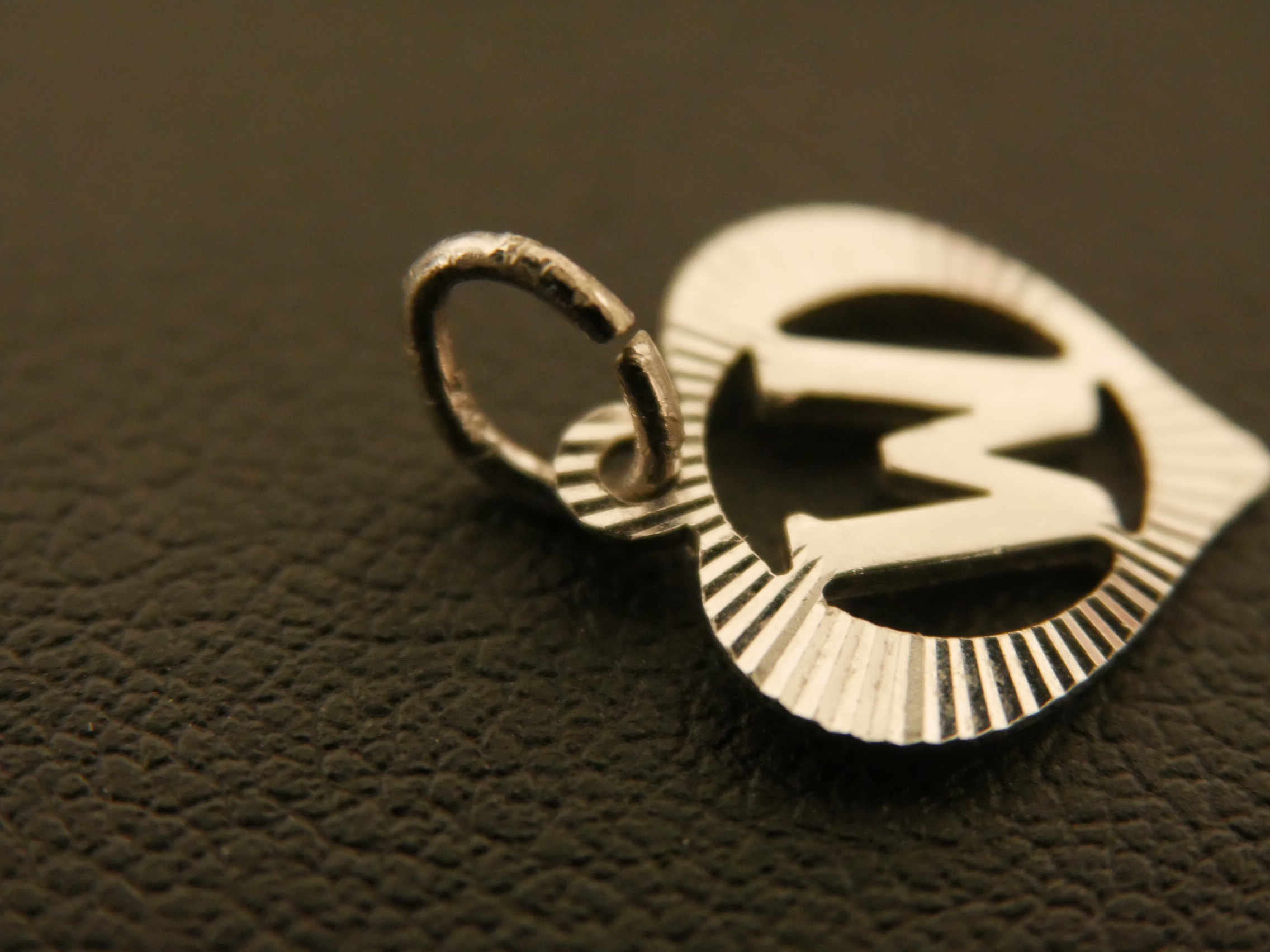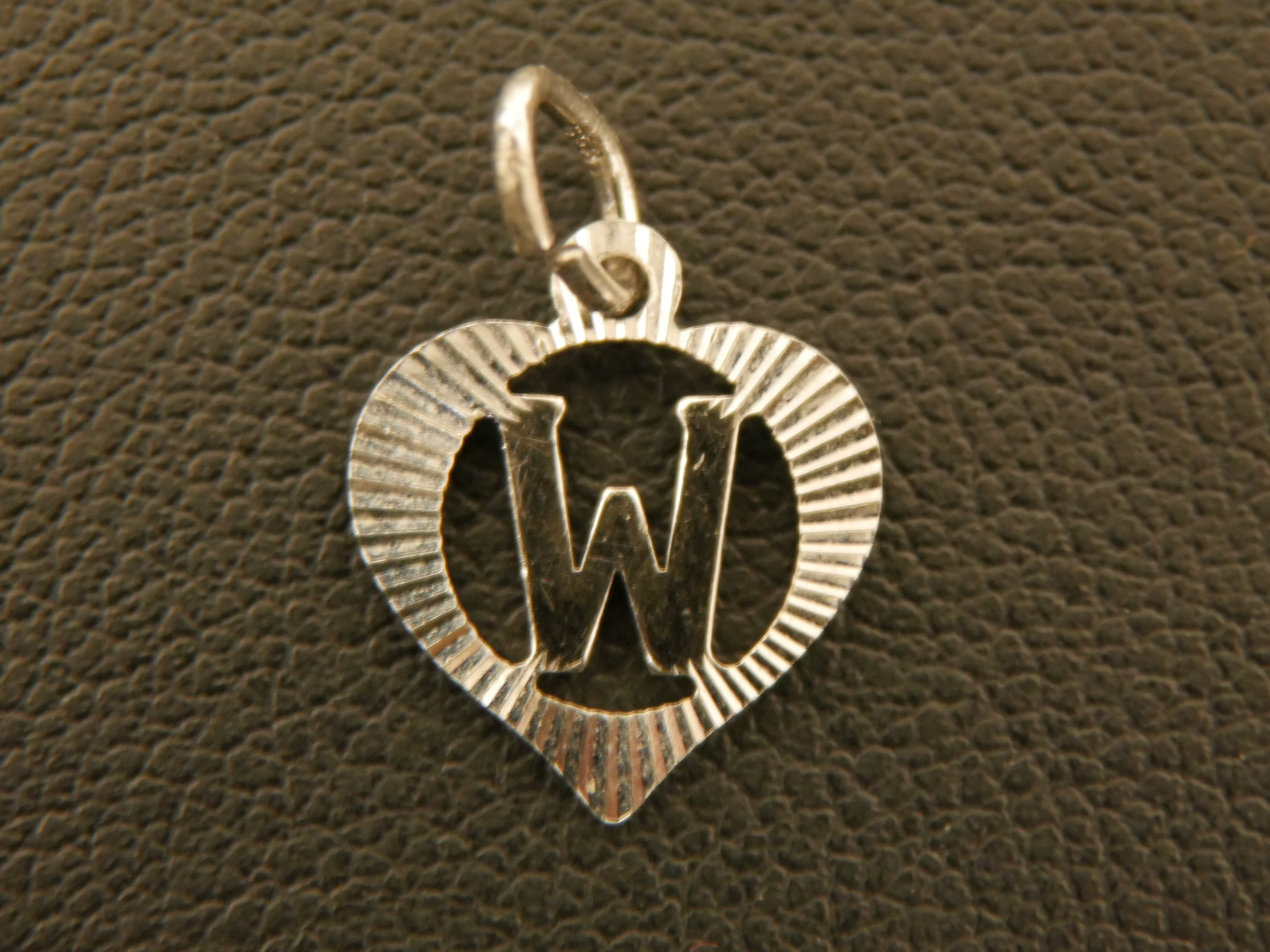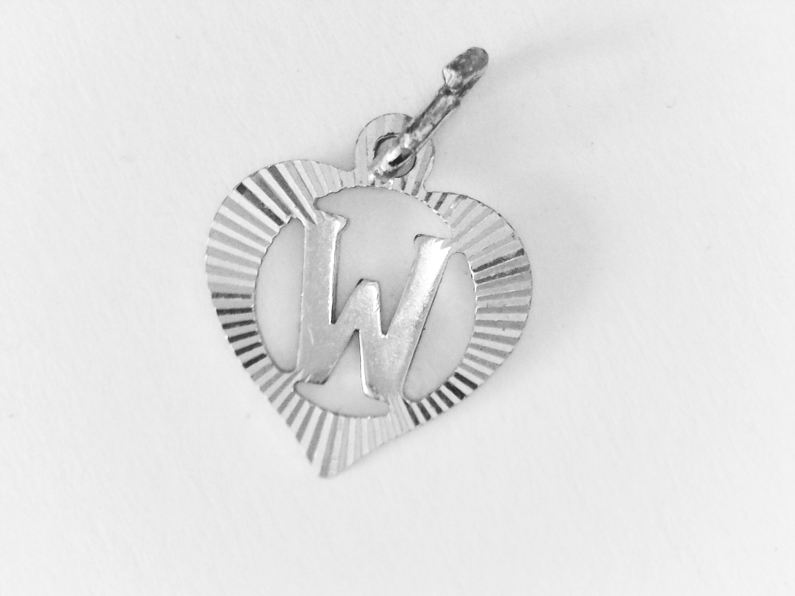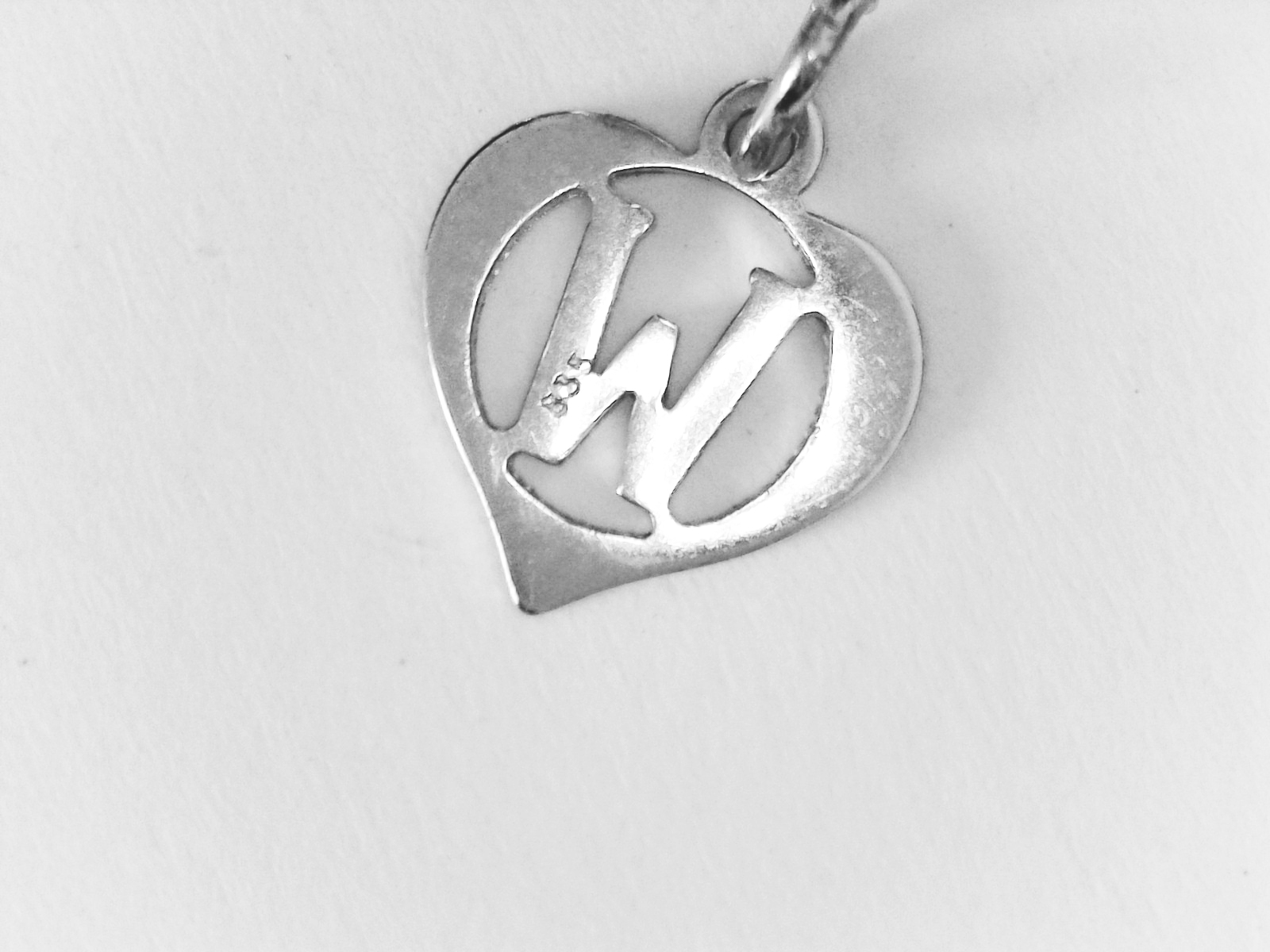 Der Herz Anhänger hat einen sehr schönen verzierten Rand mit dem Buchstaben “W” umrandet mit Strahlen Motiv.