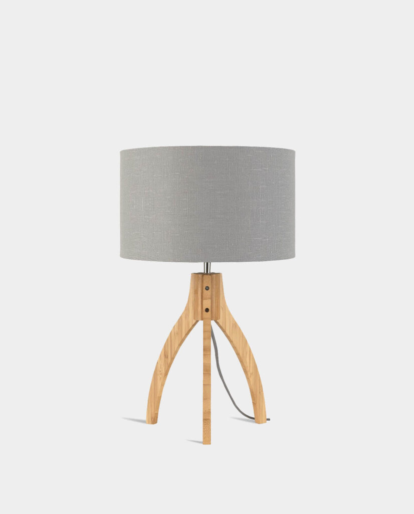 Du magst es modern und gemütlich? Dann kommst Du an der Design Tischlampe ANNAPURNA des Labels Good & Mojo nicht vorbei. Die Beine dieser hochwertigen Leuchte bestehen aus ausgewähltem Bambusholz. Dieses gibt der Tischleuchte einen einzigartigen und warmen Charakter. Außerdem ist die Form der Beine recht außergewöhnlich und ein wahrer Blickfang. Der Lampenschirm wird aus festem Leinenstoff gefertigt und sorgt für eine gemütliche Atmosphäre. Du hast hier die Wahl zwischen 6 verschiedenen Farben. Die Design Tischlampe hat eine Höhe von 30cm. Der Leuchtenschirm hat die Maße 32 cm x 20 cm. Übrigens kommen 5% des Verkaufserlöses der WakaWaka Stiftung zugute.