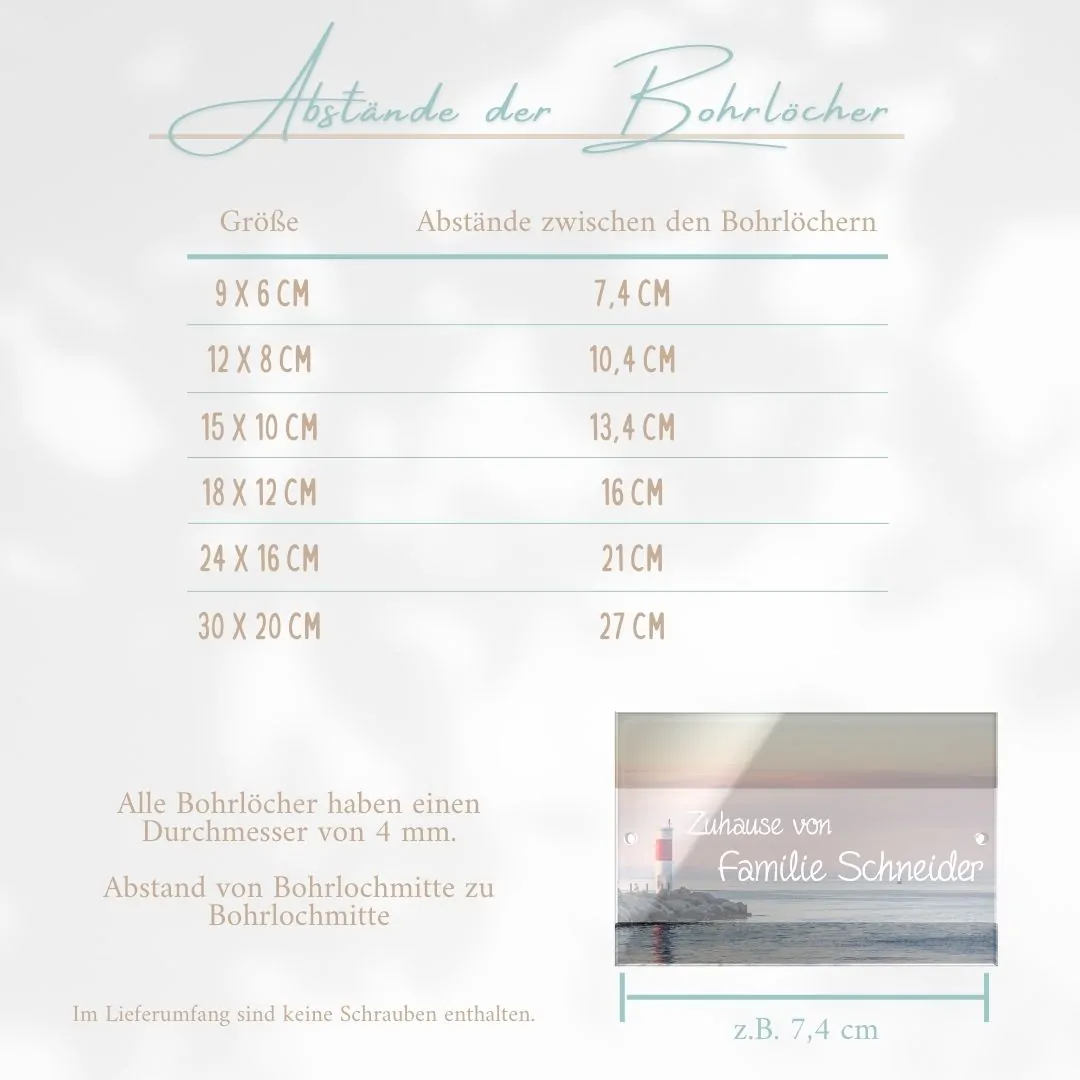 Unsere Türschilder / Namensschilder aus hochwertigem XT Acrylglas sind ideal für den Außen- wie auch Innenbereich geeignet und überzeugen mit einem einzigartigem Design und Deinem persönlichen Text. Die personalisierten Schilder werden mit einem UV-Drucker auf einem 3 mm starken Acrylglas rückseitig und somit von vorne kratzfest, bedruckt. In unserem Online-Shop findest Du eine Reihe von verschiedenen Designs, die darauf warten von Dir entdeckt und personalisiert zu werden. Ob schlicht und elegant, mit schönen Motiven oder doch ein wenig verspielt – wir haben für jeden Geschmack etwas dabei und können auf Anfrage sogar eigene Bilder oder Designs umsetzen.