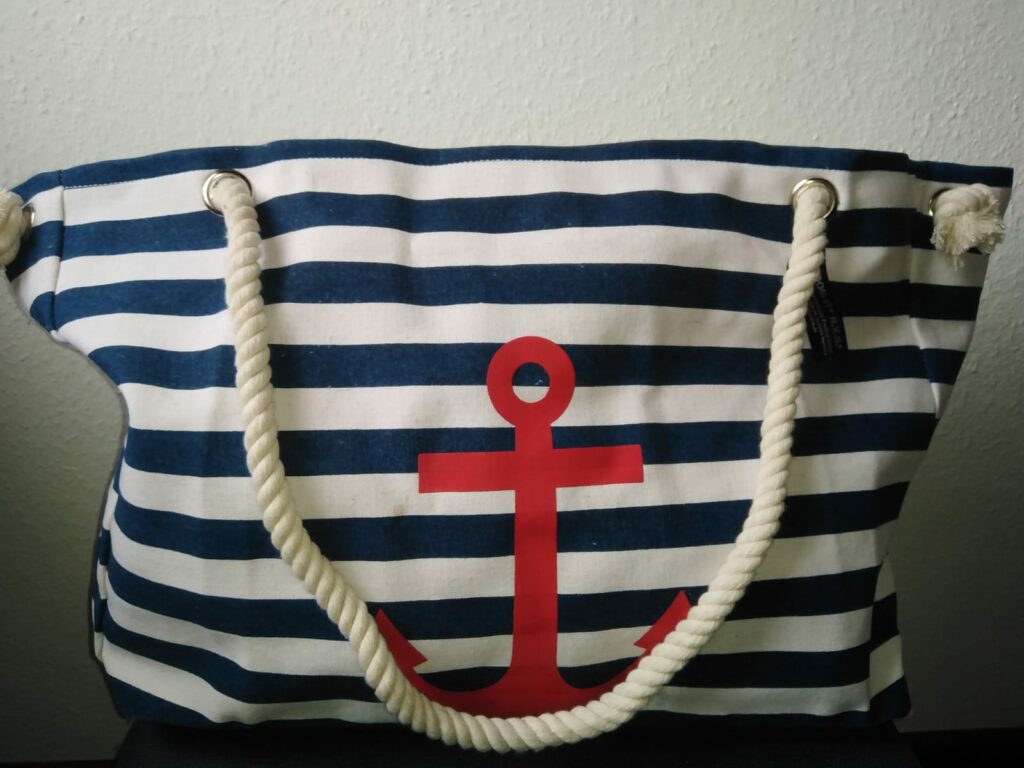 Schlüsselwörter: XXL Familien Strandtasche, Anker “Katja” Maritim, geräumig, hochwertig, maritimes Design, Baumwolle, PU, Kordel, Innentasche, Reißverschluss, Druckknopfverschluss, Strandutensilien, Accessoire.